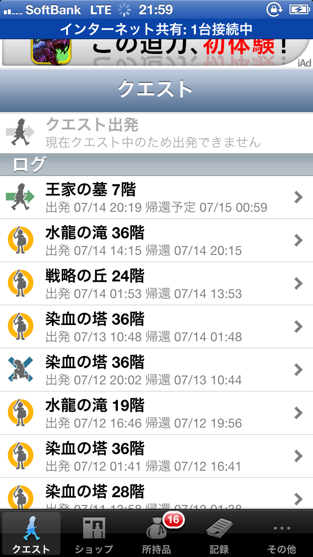 冒険に行っている時間は、指定先によって所要時間が変わり、場所によっては一日近く帰ってこないところもあります。待っている間も、冒険の過程は随時更新されており、こんな感じで表示されてます。